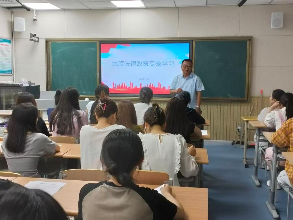 为深入贯彻党和国家关于民族工作的政策方针,加强爱国主义教育,铸牢中华民族共同体意识,永乐高60net于9月7日在113教室举办了民族法律政策专题学习活动。