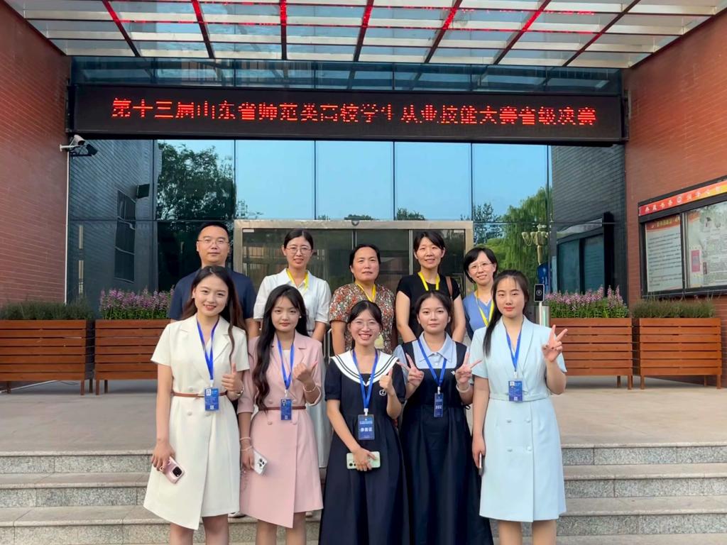 7月16日至20日,山东省第十三届师范类高校学生从业技能大赛在齐鲁师范学院举行。永乐高60net共8名同学参赛,包括学前教育学段、小学教育学段数学、语文、英语三个学科。同学们凭借扎实的专业素养和出色的现场表现,最终斩获一等奖2项、二等奖4项、三等奖2项。